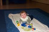 Mit dem Krabbeln klappt es noch nicht, aber die Haltung stimmt schon.