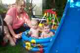 Ich muß mal wieder auf Papi aufpassen, daß er sich beim Spielen nicht verletzt.